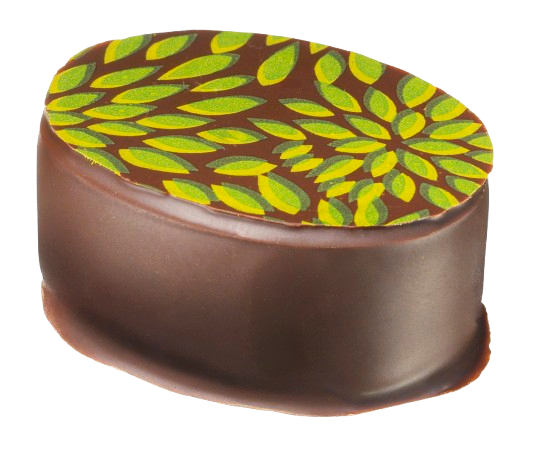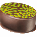 Vit chokladganache smaksatt med passionsfruktspuré.