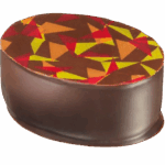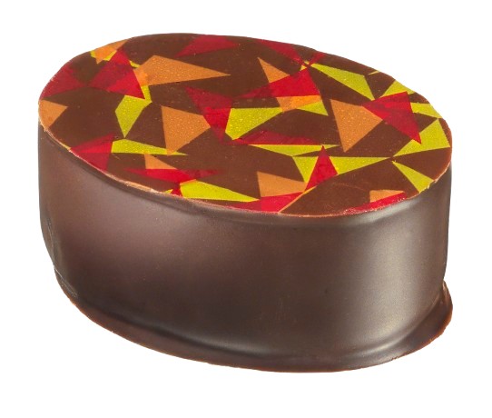 Mörk chokladganache smaksatt med svartvinbärspuré.